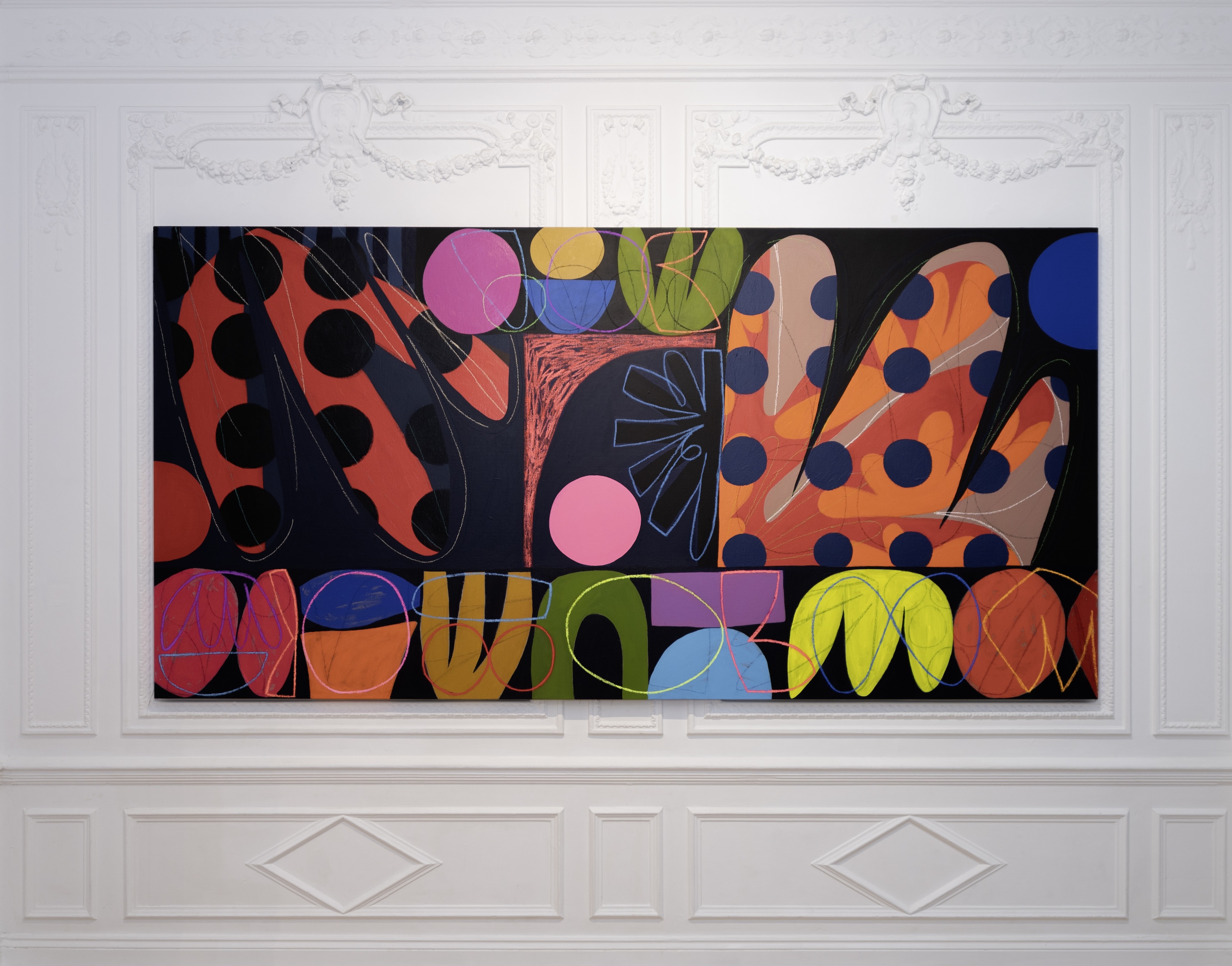 The new body of work brought together here, cohesively presents an entry in Studio Wolffia’s visual language. Something central is shape and form. These abstract curves and lines, blobs and cut outs brim with energy. Like cells in a petri dish wrestling for attention and presence. To the artist these forms reflect thoughts, feelings and moments. The canvas an internal and external mirror of the artist’s now – both psychologically and emotionally. The titles of the work – drawn from the artist’s journals – are equally personal and symbolic.
